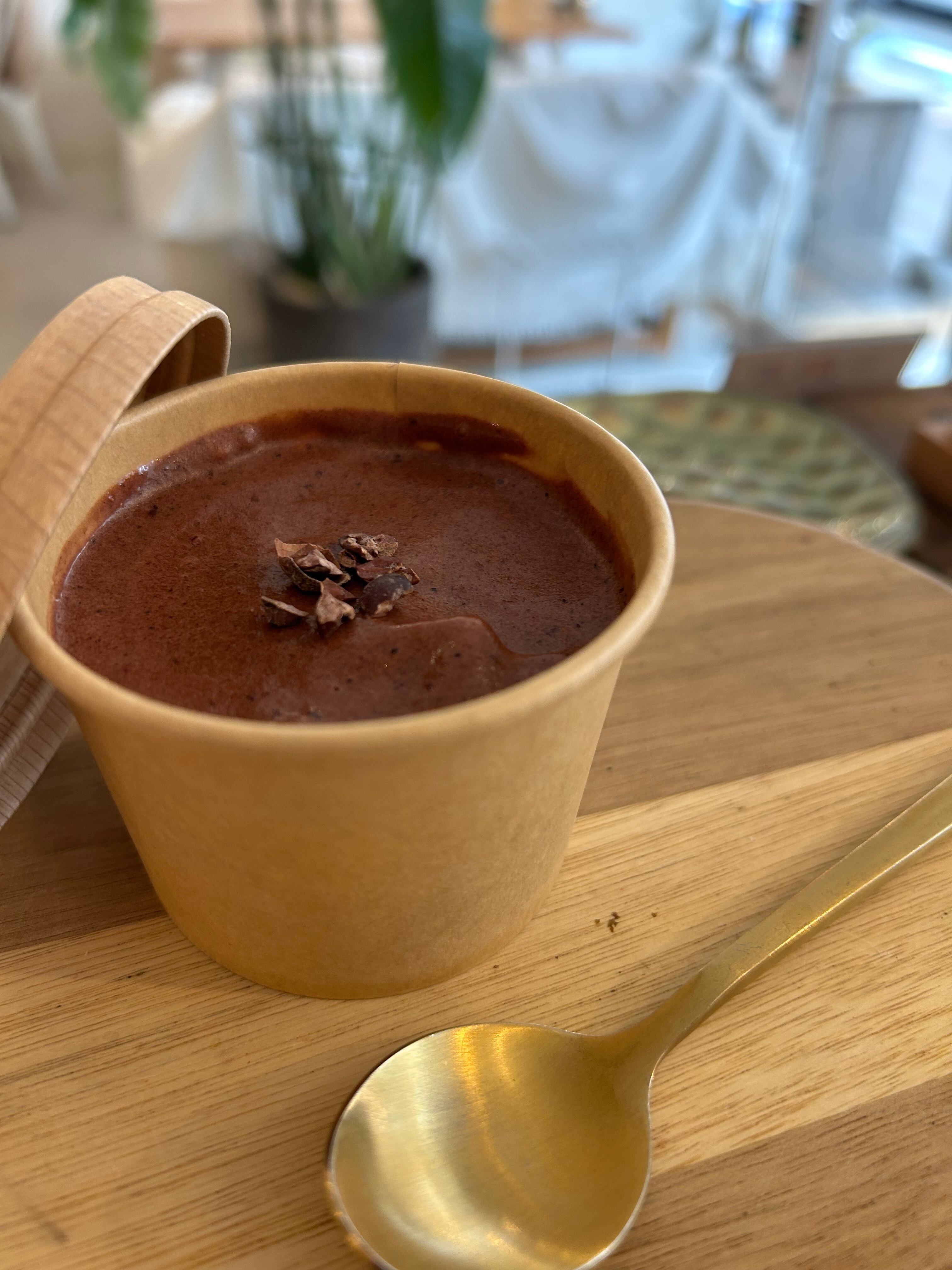 フルーツ・100%ピュアココア・はちみつのみで作る、濃厚でヘルシーなチョコホリックボウルの“ジェラート状の土台”だけを味わいたい!